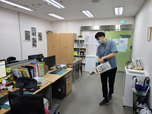 코로나19 예방을 위해 매일 수시로 방역을 진행하고 있습니다. 페이지 정보 작성자 관리자 댓글 0건 조회 2,301회 작성일 20-06-09 00:21 목록 본문 페이스북 공유 트위터 공유 구글+ 공유 이전글장애인가족자조모임 "다함께 차차차: 7월 13일 현장 스케치 20.07.14 다음글구리시장애인가족지원센터는 코로나19 확산방지를 위해 자체방역을 하고 있습니다. 20.04.03