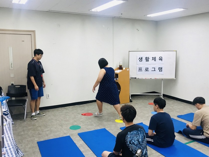 장애인 생활체육 프로그램 (14회기) 페이지 정보 작성자 관리자 댓글 0건 조회 2,134회 작성일 19-07-24 00:21 목록 본문 페이스북 공유 트위터 공유 구글+ 공유 장애인 생활체육 프로그램 14회기 진행하였습니다. 간단한 체조, 스트레칭과 마커판, 콩주머니를 활용하여 제자리 멀리뛰기, 콩주머니 던지기등 진행하였습니다~^^ 이전글무지개동아리 활동 19.08.12 다음글장애인 생활체육 프로그램 (13회기) 19.07.17