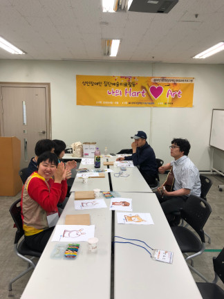 성인장애인 평생교육 우수프로그램 나의hart♥art (금 3회기) 페이지 정보 작성자 김아롬 댓글 0건 조회 2,143회 작성일 18-05-11 00:20 목록 본문 페이스북 공유 트위터 공유 구글+ 공유 이전글찾아가는 생활체육 프로그램 성인발달장애인 스트레칭교실(월) 18.05.14 다음글동료상담사 슈퍼비전 진행 (목) 18.05.10