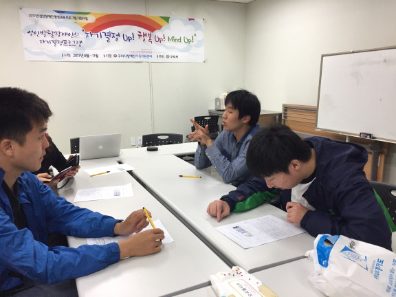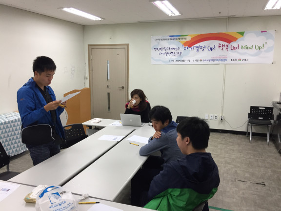 자기결정 UP! 행복 UP! Mind UP! 7주차(월) 모임 페이지 정보 작성자 김아롬 댓글 0건 조회 1,970회 작성일 17-10-17 00:20 목록 본문 페이스북 공유 트위터 공유 구글+ 공유 이전글동료상담사 심화과정 6주차(수) 17.10.18 다음글부모교실 토탈공예 1주차 (월) : 천연비누 만들기 17.10.17
