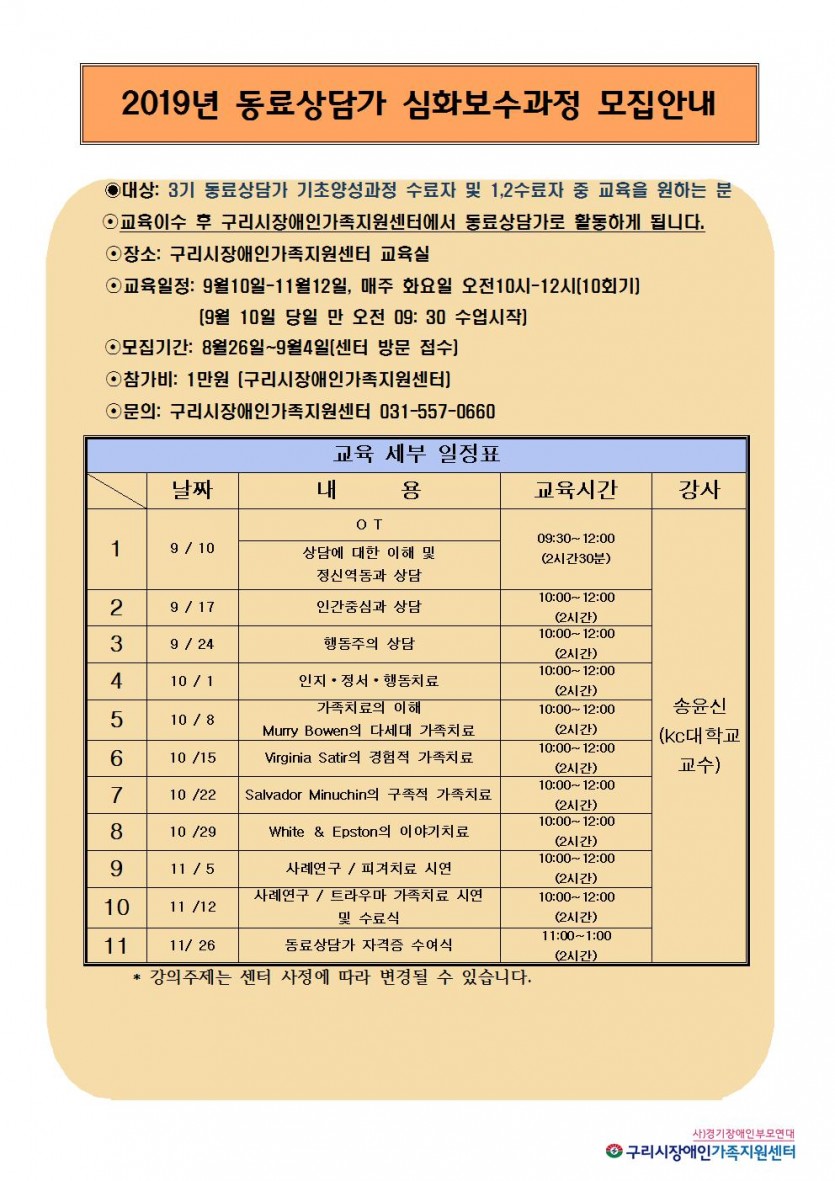 2019년 동료상담 양성과정 (모집) 페이지 정보 작성자 관리자 댓글 0건 조회 8,554회 작성일 19-08-19 00:18 목록 본문 페이스북 공유 트위터 공유 구글+ 공유 이전글하반기 사회복지 현장 실습생 모집 19.08.20 다음글육아휴직 대체인력 모집(마감) 19.08.28 댓글 0 댓글목록 등록된 댓글이 없습니다.