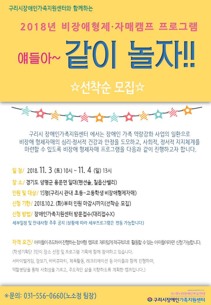 가족역량강화사업 비장애형제자매 캠프 참가자를 모집합니다.