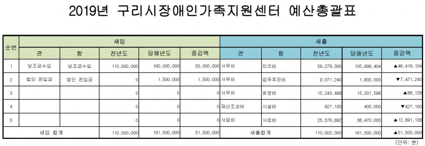 2019년 구리시장애인가족지원센터 예산총괄표 페이지 정보 작성자 관리자 댓글 0건 조회 8,673회 작성일 19-02-07 00:18 목록 본문 페이스북 공유 트위터 공유 구글+ 공유 이전글구리시장애인가족지원센터 2월 일정표 19.02.07 다음글설연휴 센터휴무 공지 19.02.01 댓글 0 댓글목록 등록된 댓글이 없습니다.