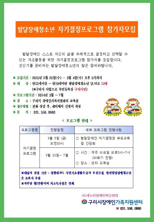 <발달장애청소년 자기결정프로그램 참가자모집>