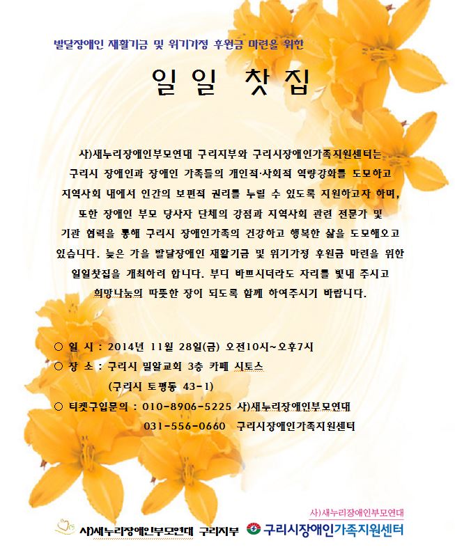 있습니다. 늦은 가을 발달장애인 재활기금 및 위기가정 후원금 마련을 위한
