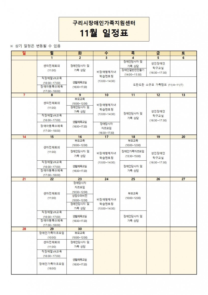 2021. 11월 구리시장애인가족지원센터 일정안내