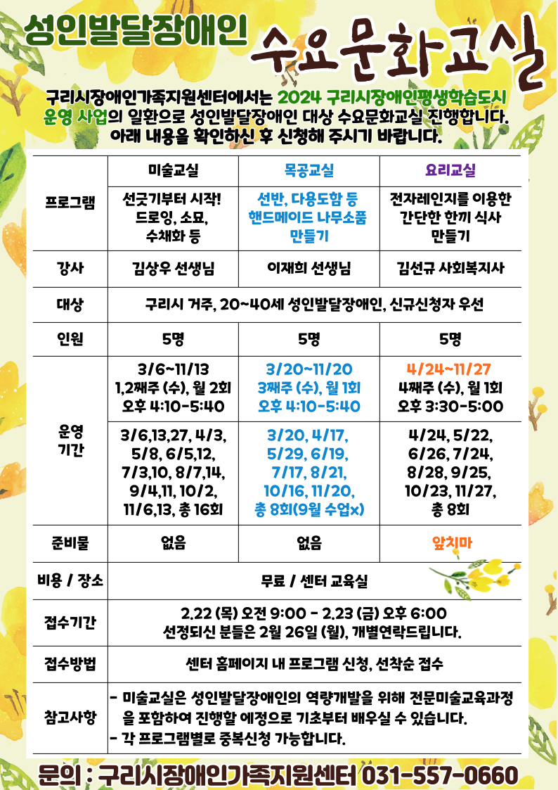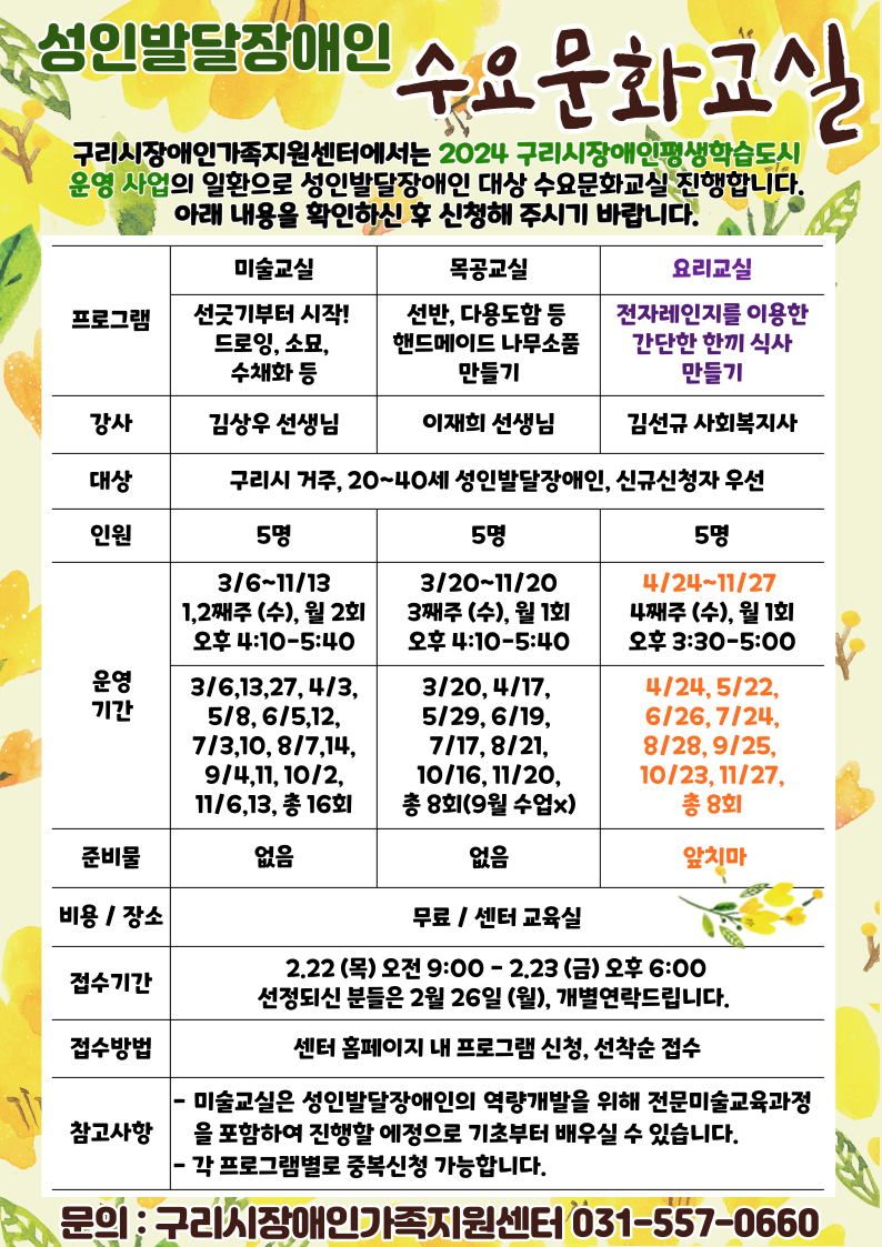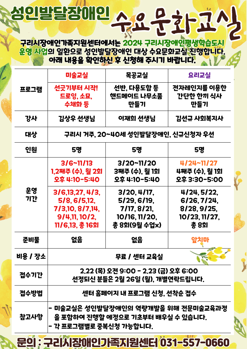 운영일시매월 1,2째주 (수) 오후 4:10-5:40